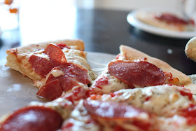 And you've got homemade pizza sauce! WAY better than the jarred stuff {we also use Preggo spaghetti sauce instead of pizza sauce}.